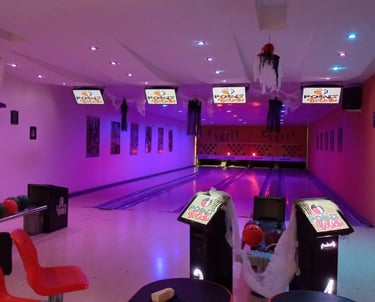 Venha se divertir com boliche, lanches e jogos emocionantes!